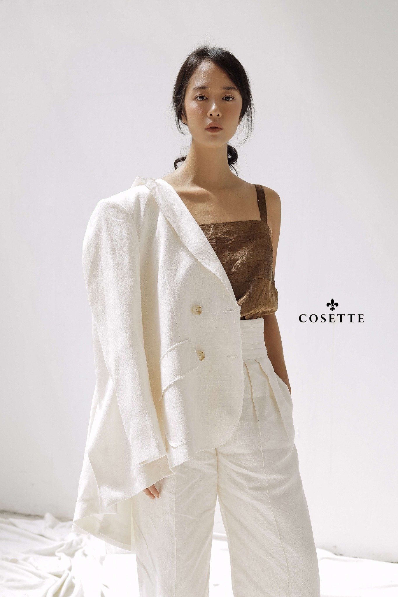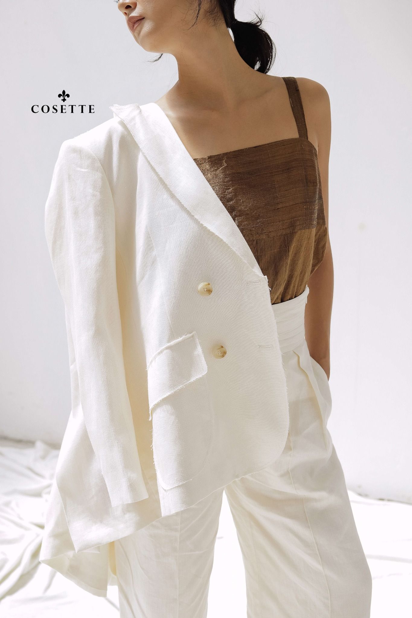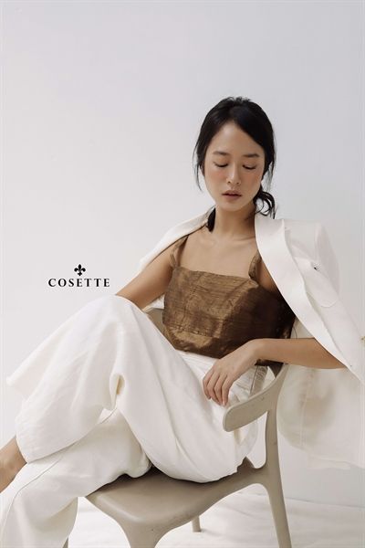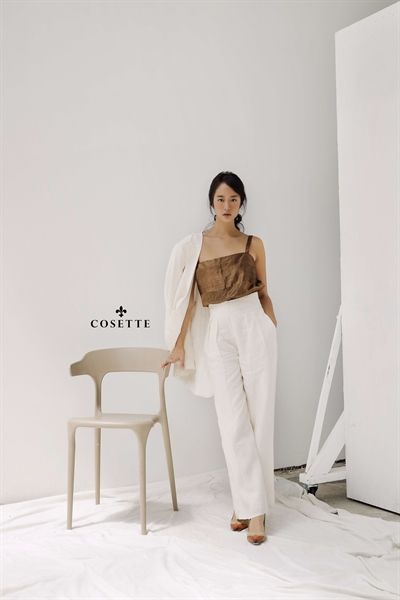 Áo 2 dây nâu vải tơ 2 lớp