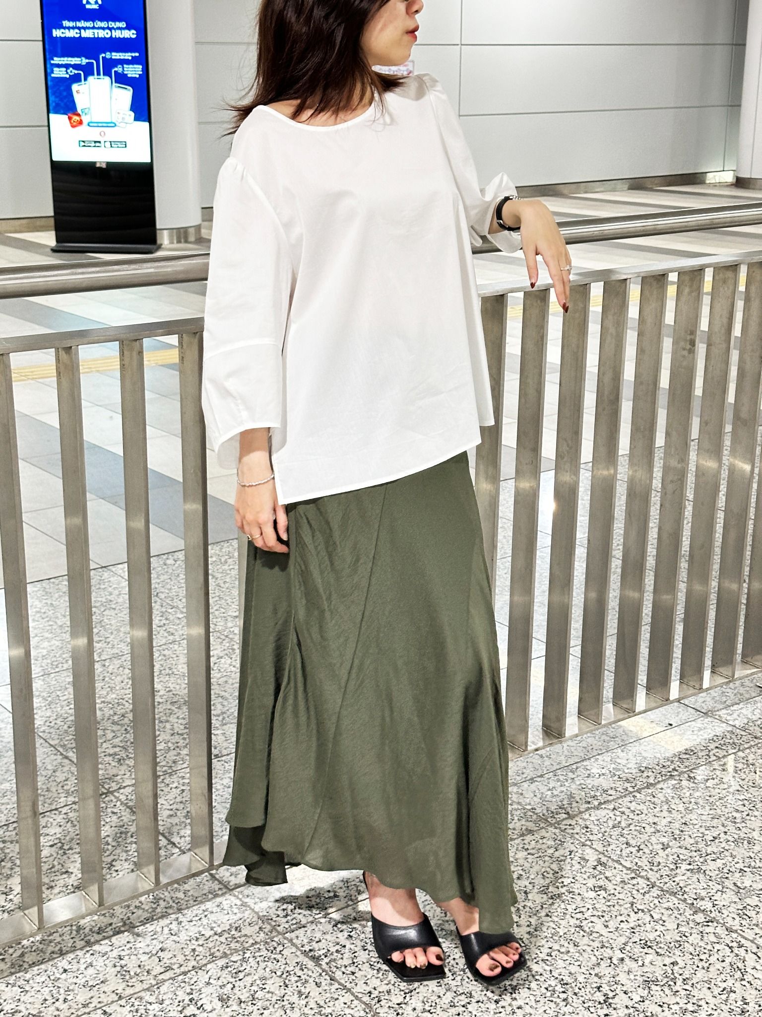 Áo cổ tròn tay lỡ trắng