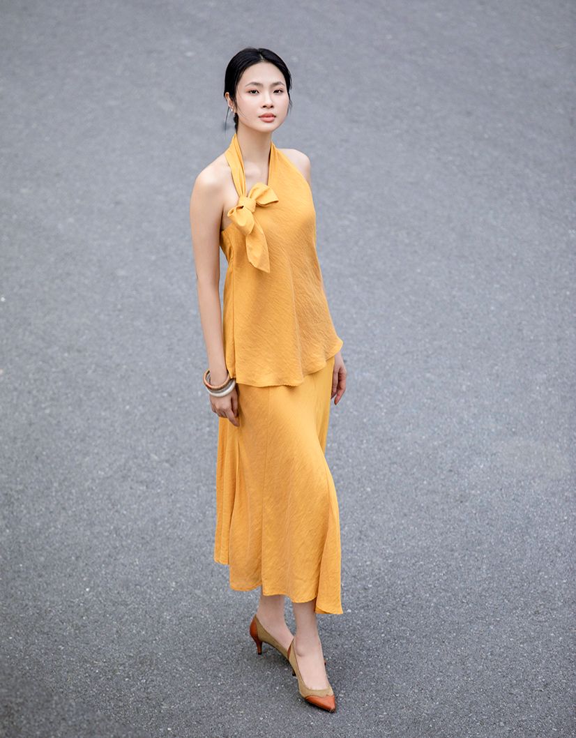 Inspired by the super streamlined cuts and unique way of dissolving pieces, the highlight of Nostalgia Knot is condensed with a sweet bow tie, the fabric material creates an inherently soft and gentle drape, recreating the portrait of a woman in the 90s, classic but still very modern.
