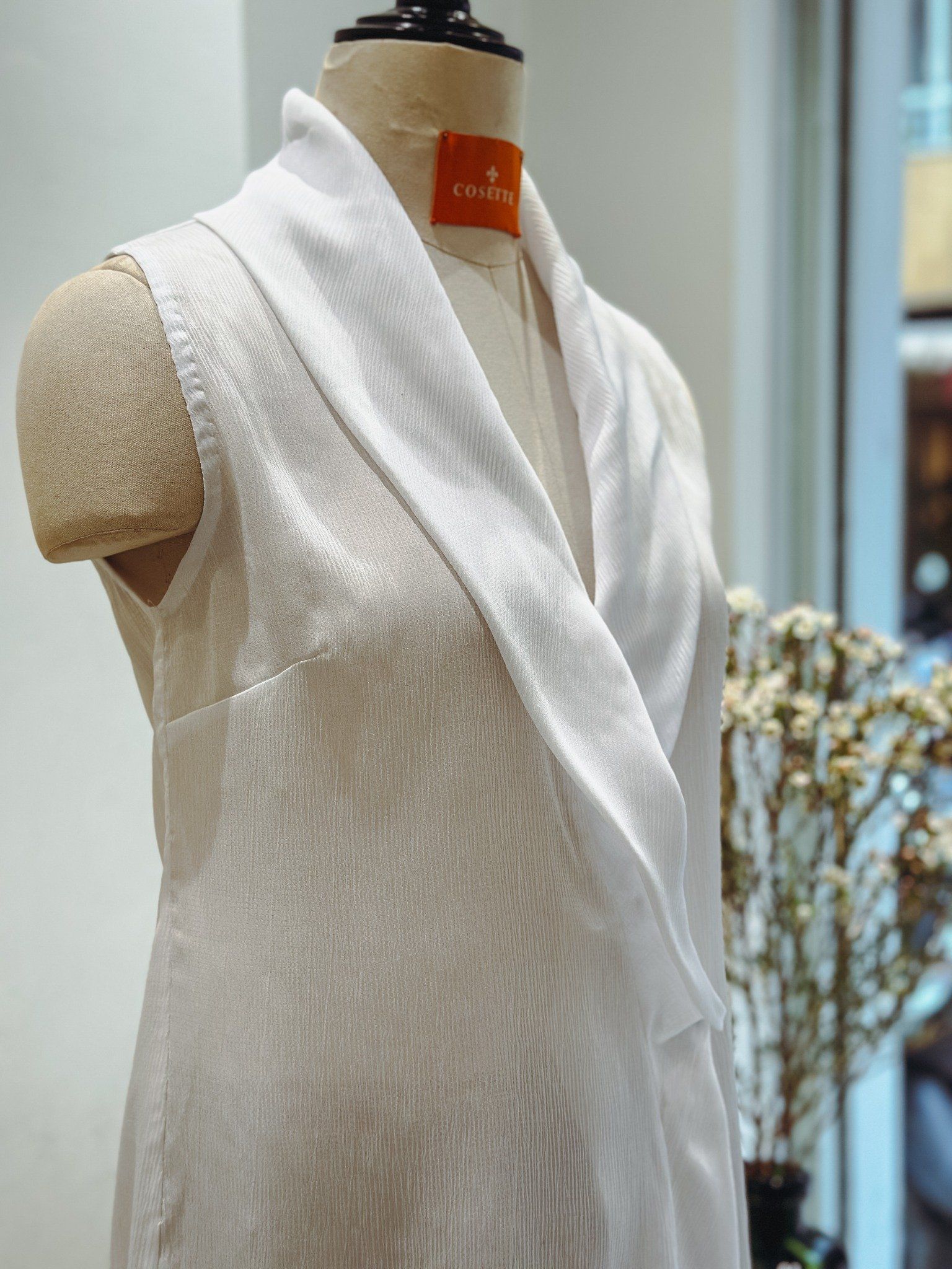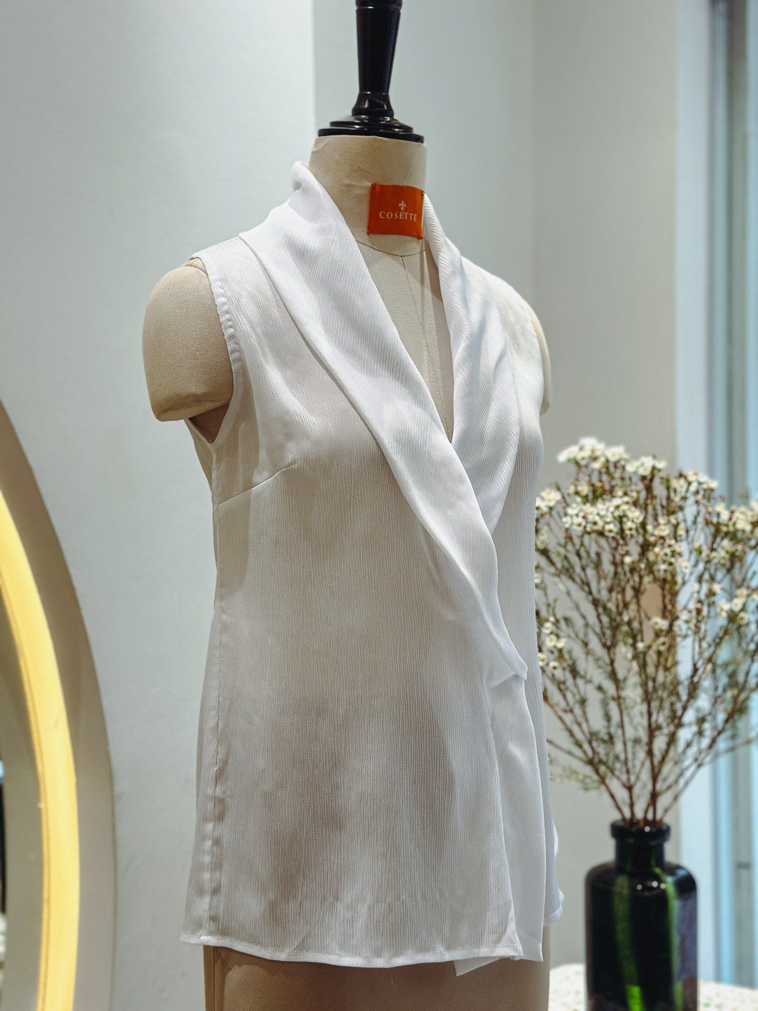 Áo sát nách cổ sam vải lụa trắng