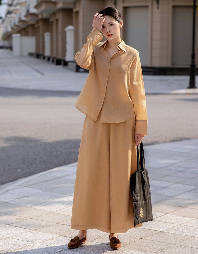 Áo sơ mi mút vai nâu nhạt