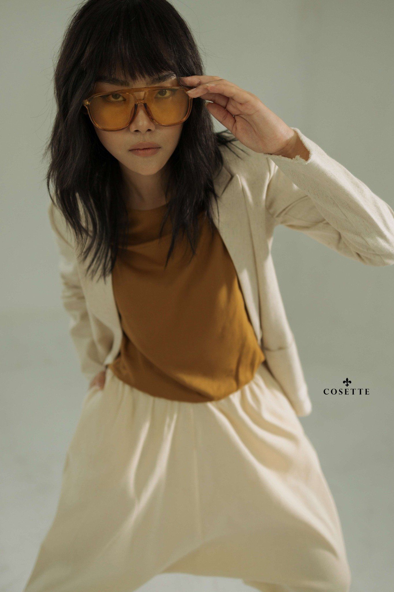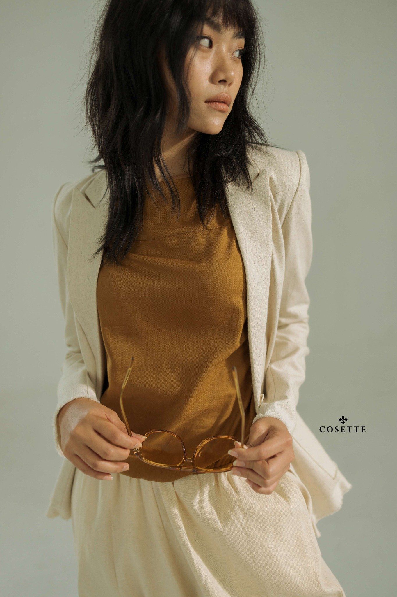 Áo tay liền nhún thun nâu