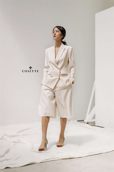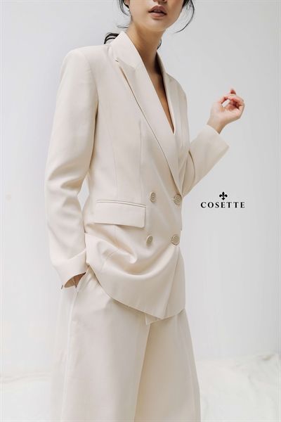 Áo vest 4 nút 2 lớp xẻ sau kem