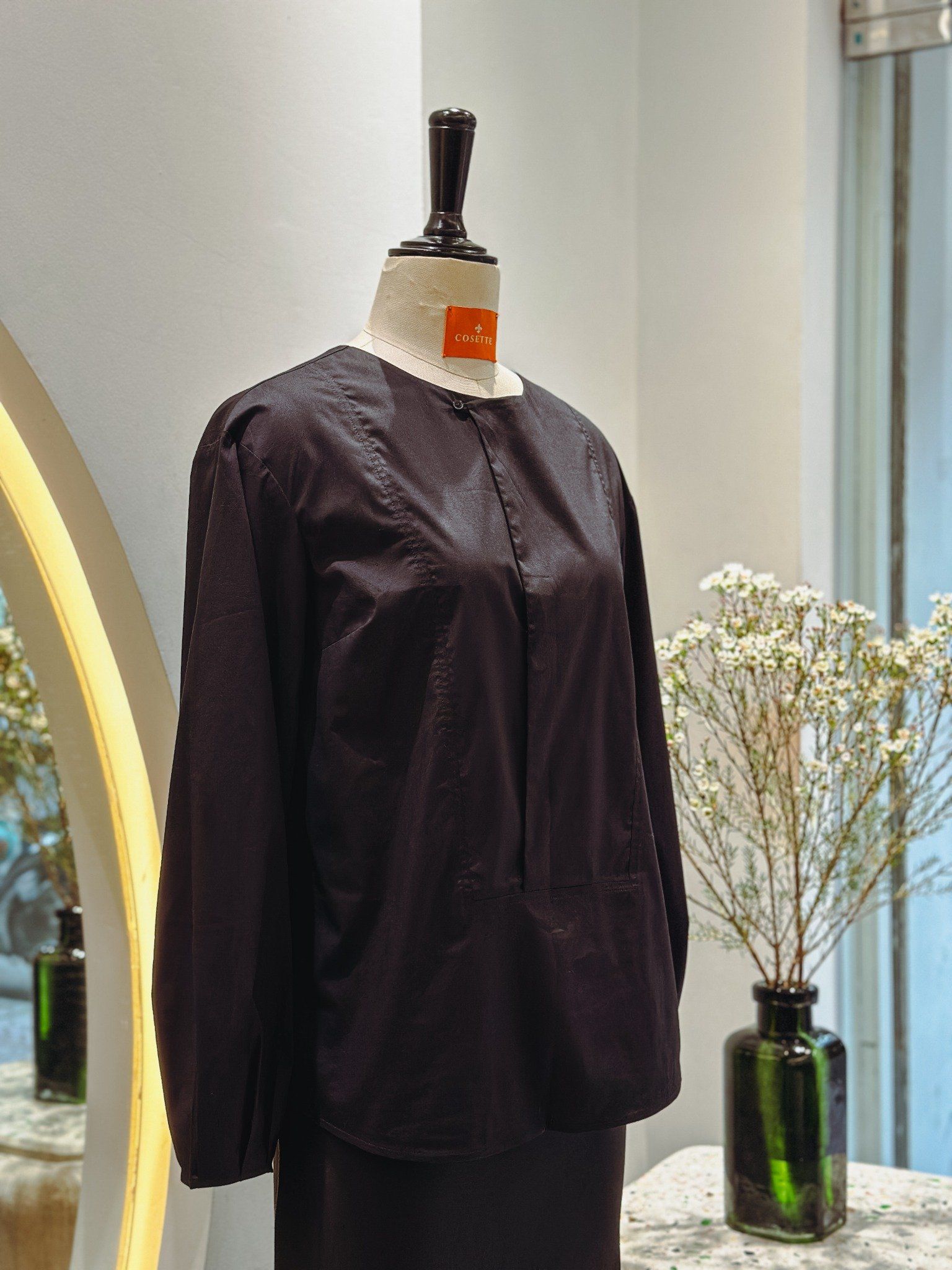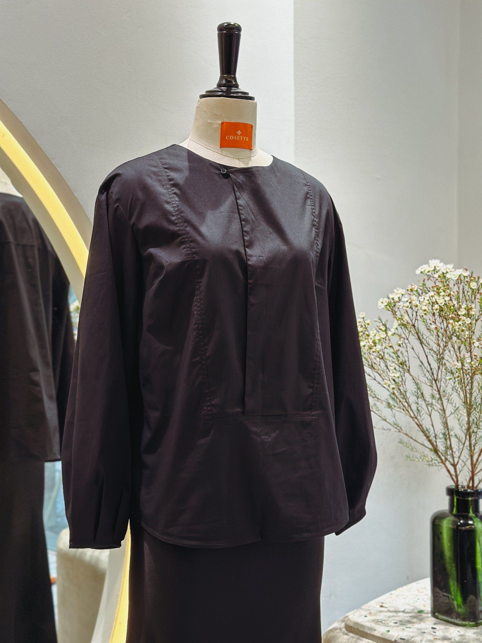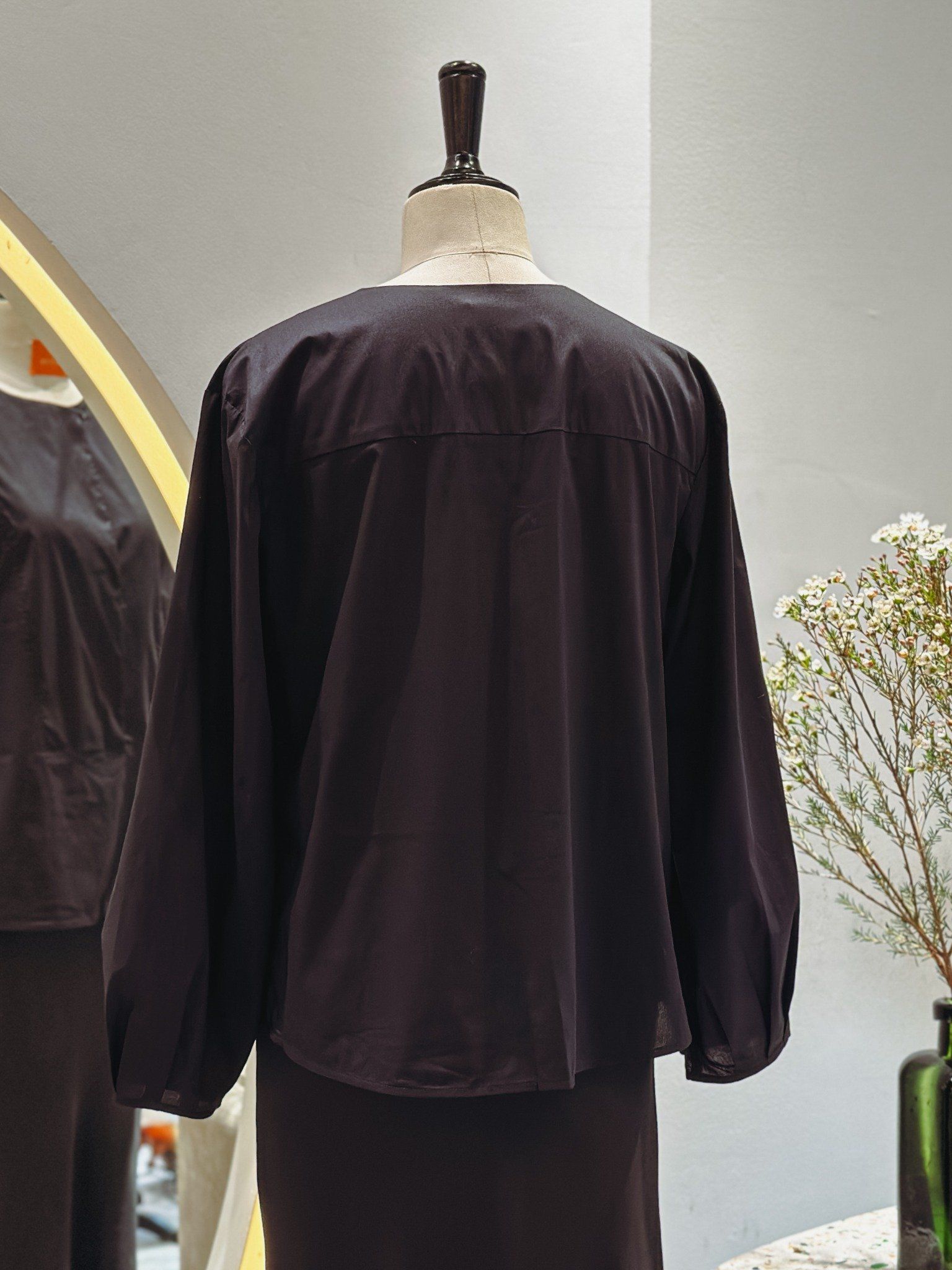 Áo xẻ trụ tay dài phồng đen