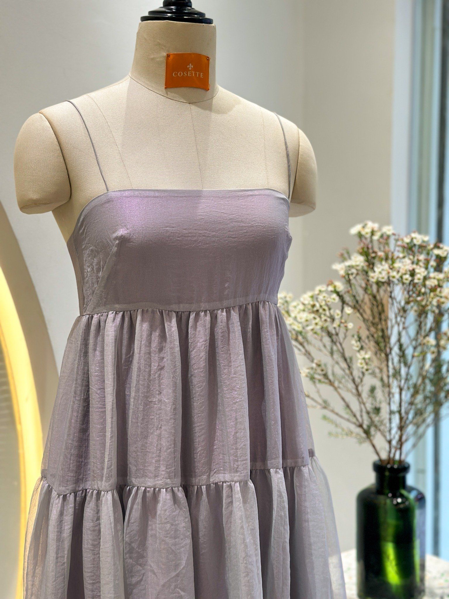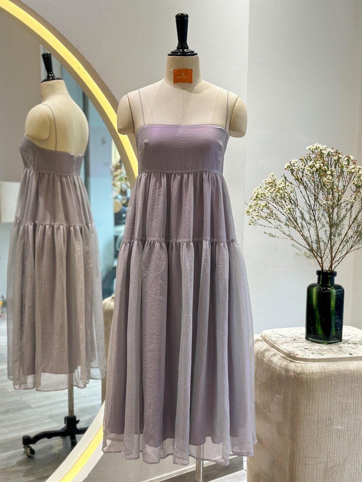 Đầm 2 dây nhún 2 tầng bèo xanh xám