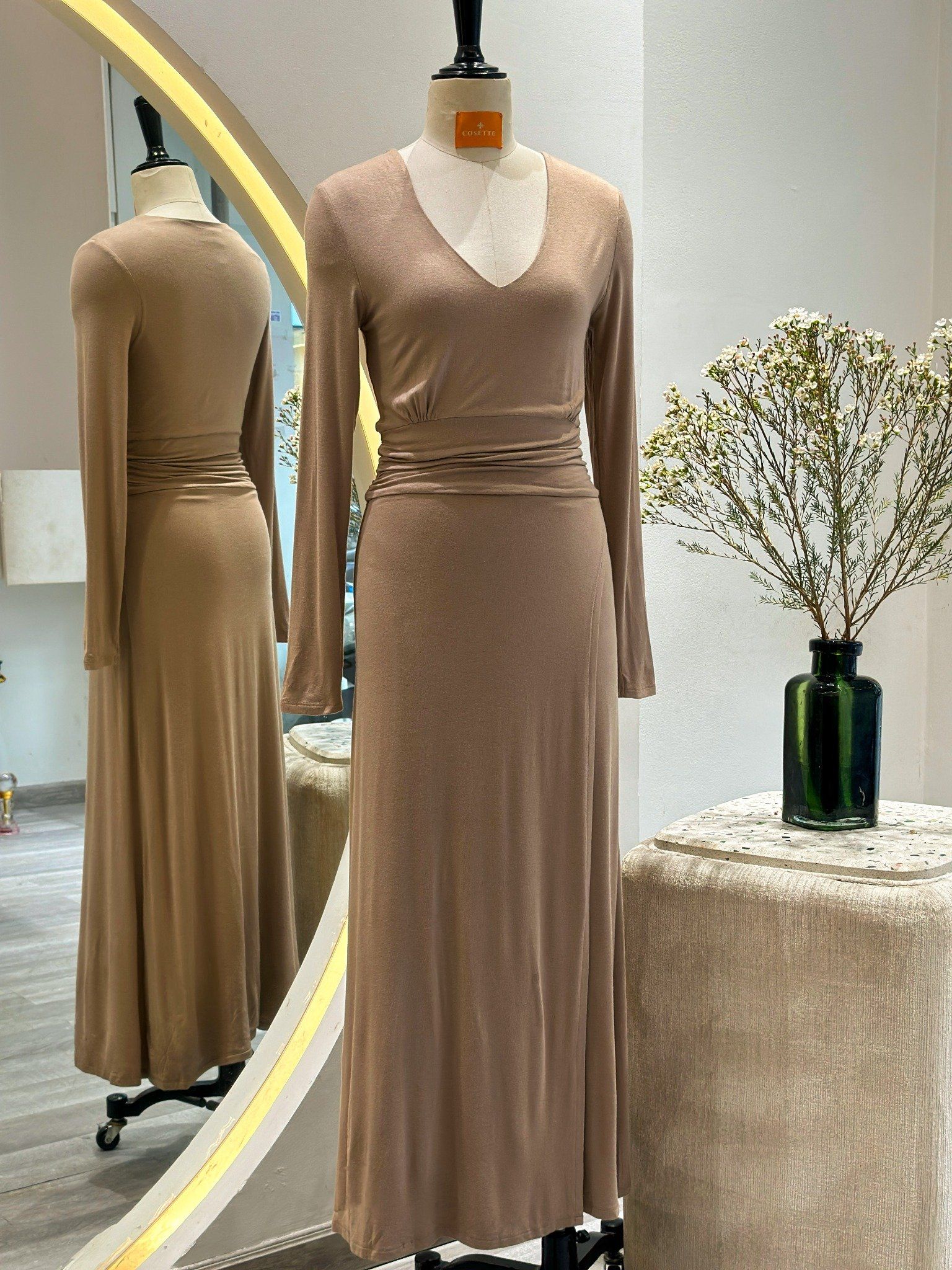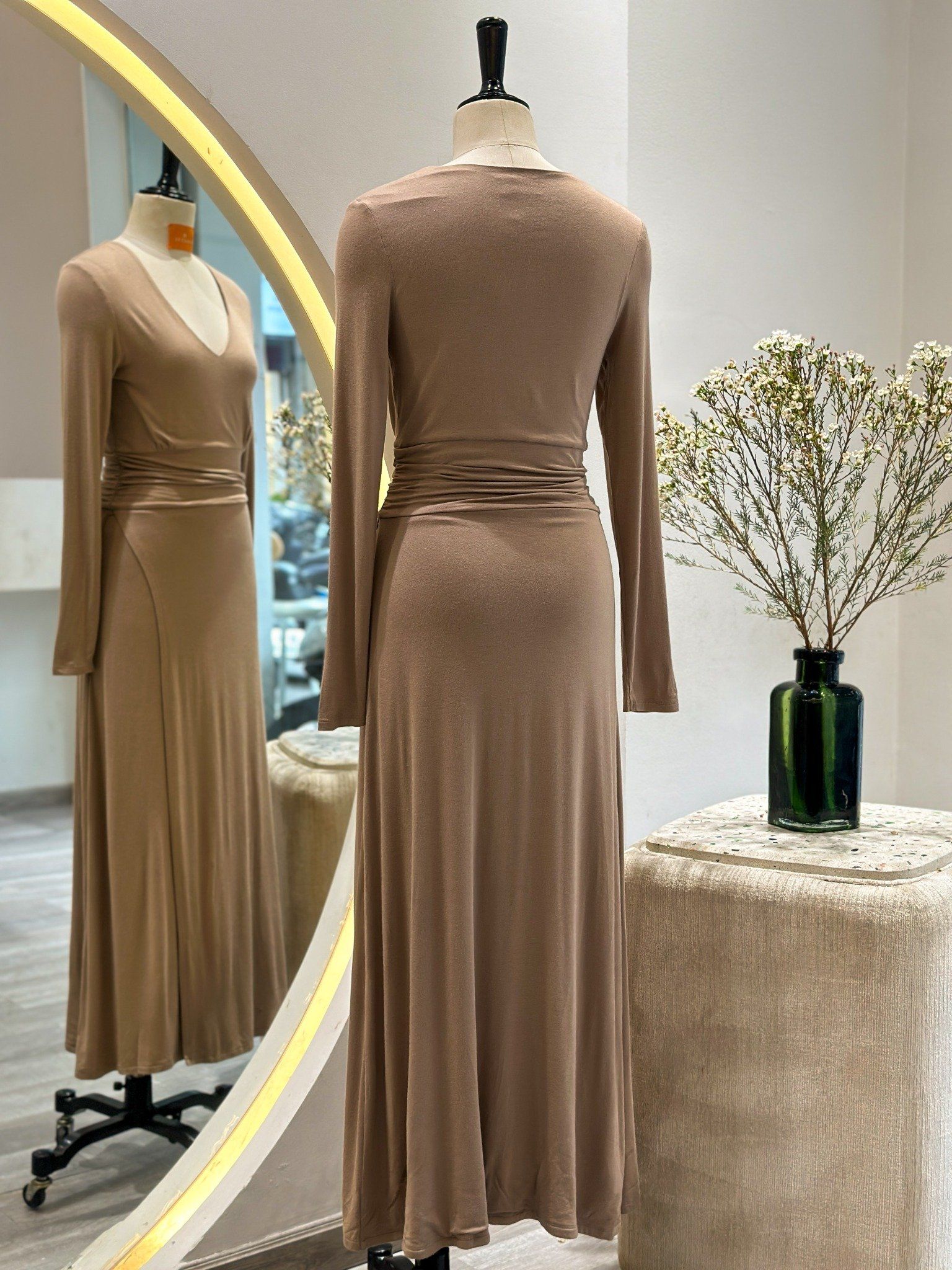 Đầm thun tay dài bo eo xám đậm